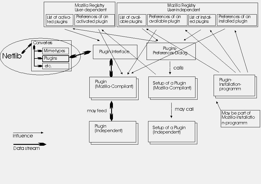 Those standard-interfaces can be supplied by the Mozilla-compilant filters. Mozilla-compilant filters get just interfaces to other filters. This way, more than one interface is accessible. But this technique should be completely transparent to the user. Mozilla-filters should know, which filters belonging to them are installed on the system and report them to Mozilla, so that the user can choose directly the independent filters (not the interfaces and then the filters). If the user clicks on the "Setup..."-Button after selecting an already activated filter, a setup-window of the independent filter should show up.